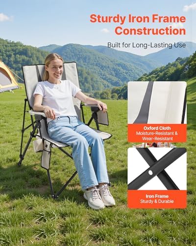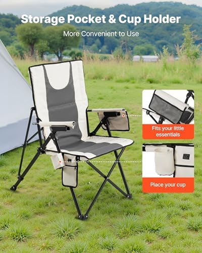 VEVOR Heated Camping Chair, 3 Heat Settings, High Back Folding Camping Chair, Supports 260lbs, Full Padded Beach Chairs with Armrest & Cupholder, Portable Lawn Chairs for Outdoor Sports Travel